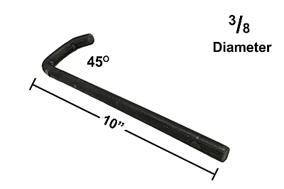 J-Hook Bracket Rod - 10" Long - 3/8 Diameter - 45degree end