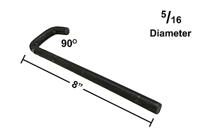 J-Hook Bracket Rod - 8" Long - 5/16 Diameter - 90degree end